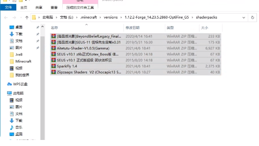 3、随后将光影包放到光影包文件夹中,就可以选择使用了。
