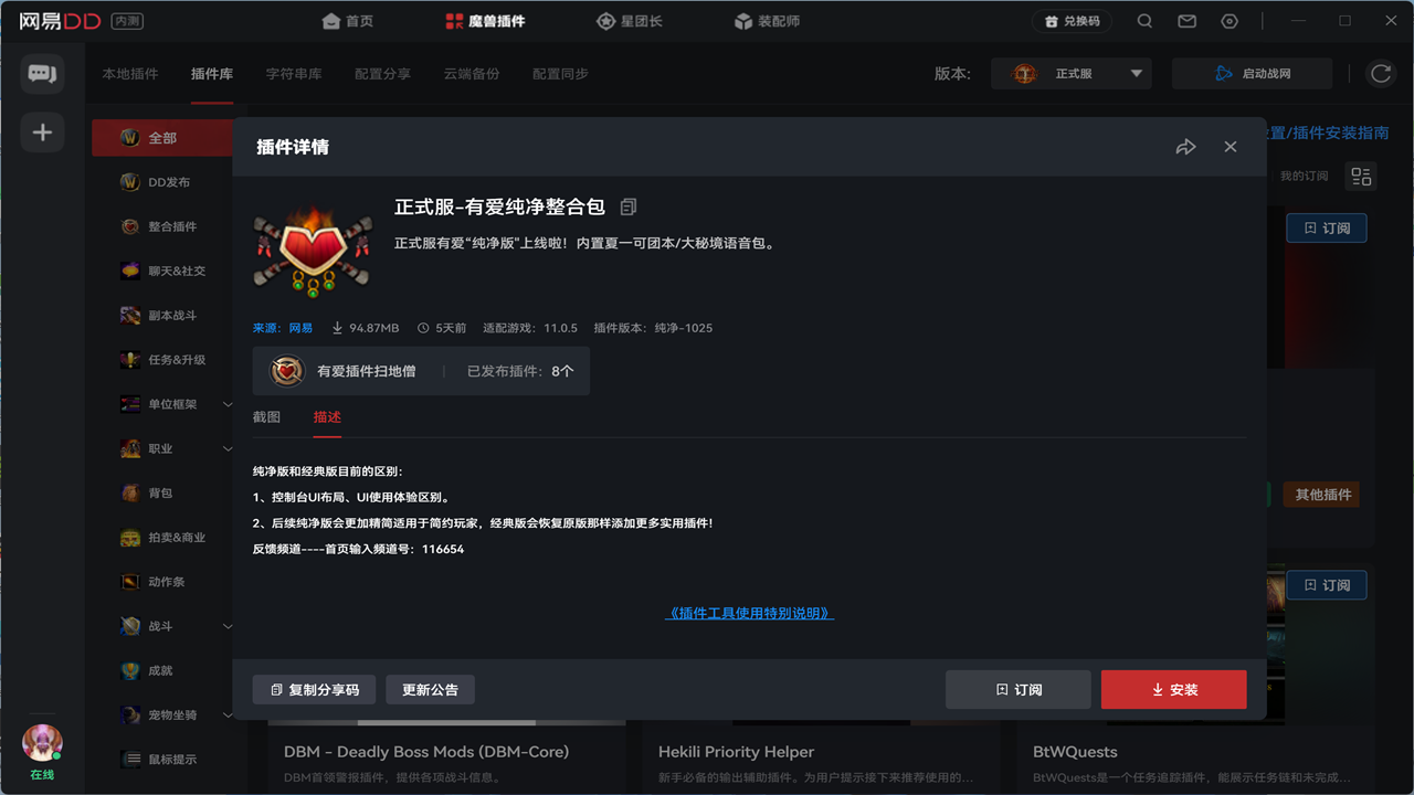 网易dd魔兽插件是一款适合魔兽玩家的辅助工具,可优化任务流程增强战斗信息显示,支持团队协作功能,安装启用便捷设置步骤清晰,适配游戏版本更新无需额外调整,帮助玩家提升效率快速掌握游戏动态,顺畅体验冒险旅程。