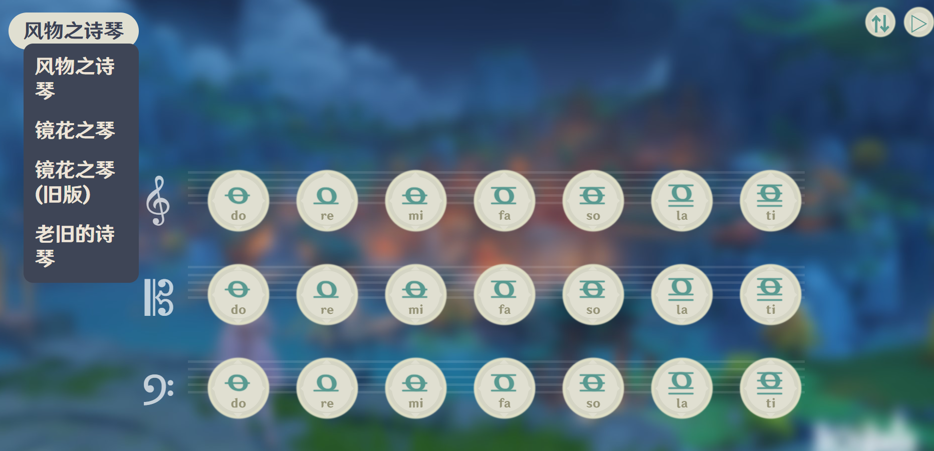 风物之诗琴模拟器是一款专门用于进行原神演奏的模拟工具,这款软件可以模拟出原神当中的风物之诗琴演奏玩法,玩家们可以在其中点击不同的音调来进行演奏,无需进入原神就可以在这款软件当中弹奏出各种音乐了。