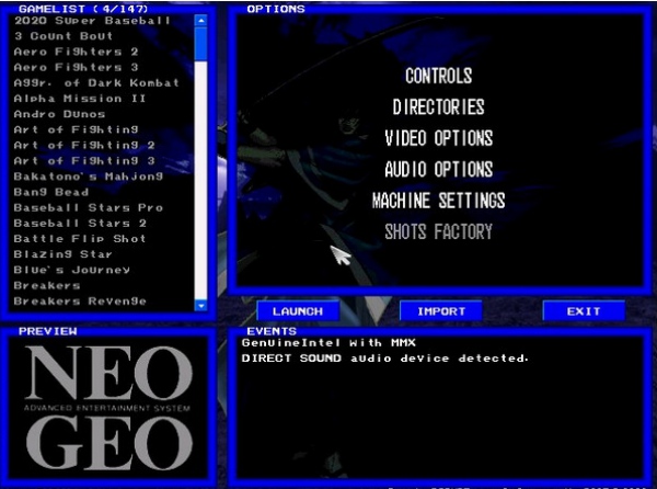 软件内置对NeoGeo系统的高兼容性,支持运行大量经典街机游戏ROM。