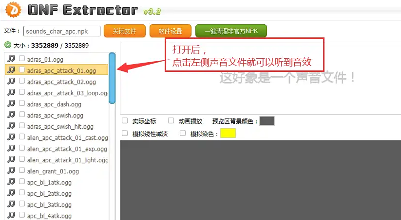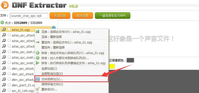 2、接着我们就可以在左侧的声音文件中找到文件对应的音效。
