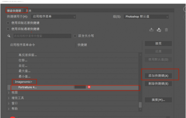 2、随后我们需要添加快捷键,对Portraiture的快捷键进行设置和处理,即可进行使用。