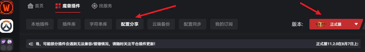 1、首先我们打开软件,选择魔兽插件正式服的配置分享。