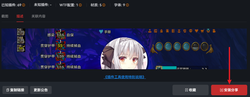 3、随后点击安装分享,就会自动对插件包进行安装了。