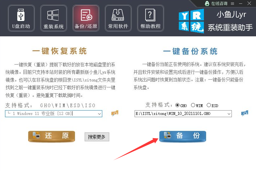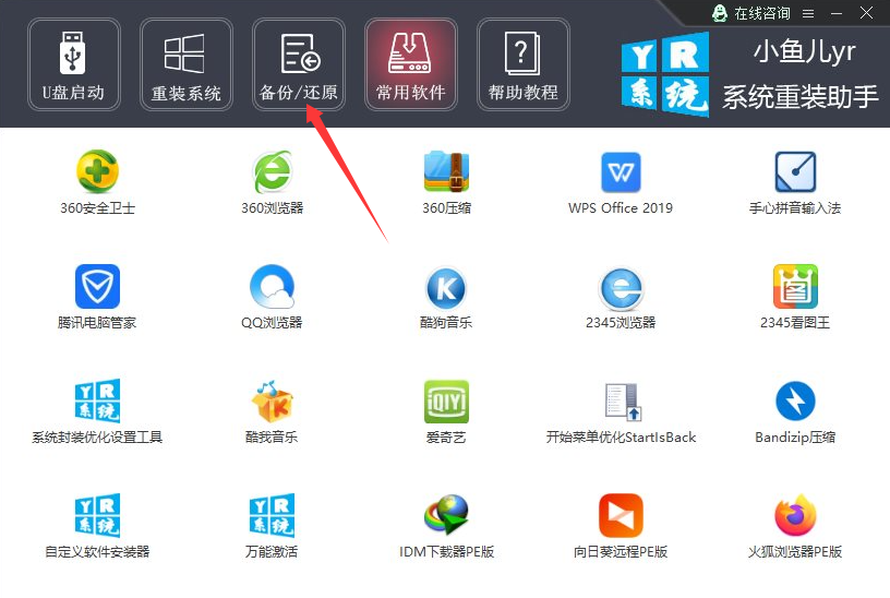1、进入软件当中先点击右边的备份还原。