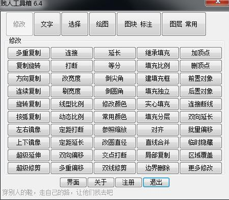 贱人工具箱6.0是专门为AutoCAD打造的辅助插件,它集成了超多工具模块,比如图层管理、文字处理、标注优化等等,比起原生的AutoCAD软件功能更加丰富了,大家可以使用这些小工具来辅助设计,有效提升出图效率。