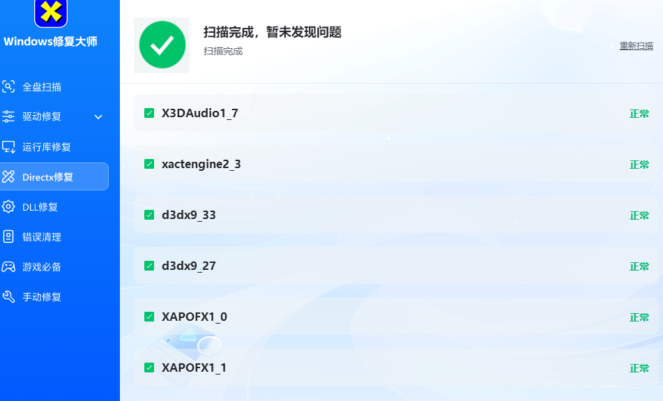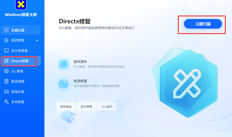 directx repair v4.4增强版是一款专业的修复工具,当电脑出现了运行库缺失或者运行异常等问题时不妨使用该软件来快速修复。软件在进行修复之前还会通过检测报告的形式将问题都显示出来,让用户了解情况。