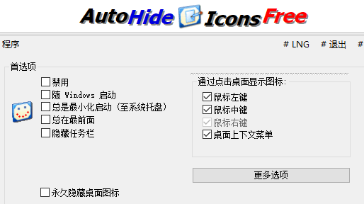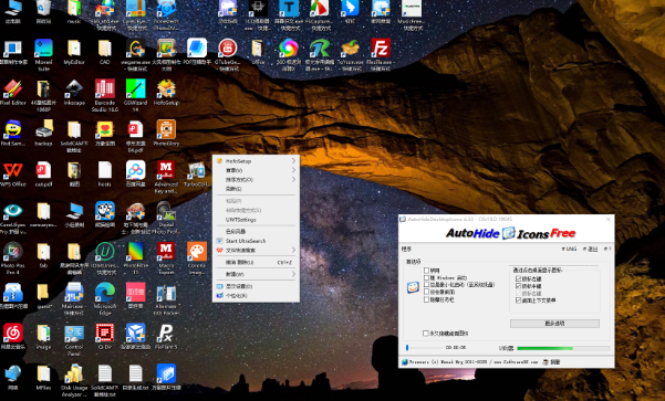AutoHideDesktopIcons中文版能够帮助用户来对自己的桌面图标进行隐藏差走哦,可以轻松隐藏自己的桌面图标,带来了非常优质的隐藏效果,在需要使用的时候点击鼠标就会进行显示,操作起来非常的方便,有需要的小伙伴快来下载吧!