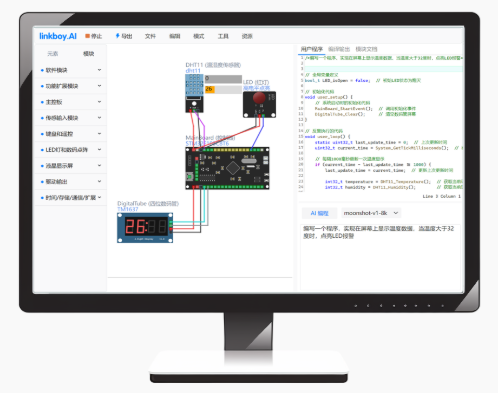 支持在线实时的进行代码编程,支持自然语言的编程,可以对硬件进行调试验证。