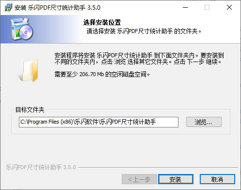 1、在本站下载乐闪pdf尺寸统计助手,打开安装程序,点击安装。