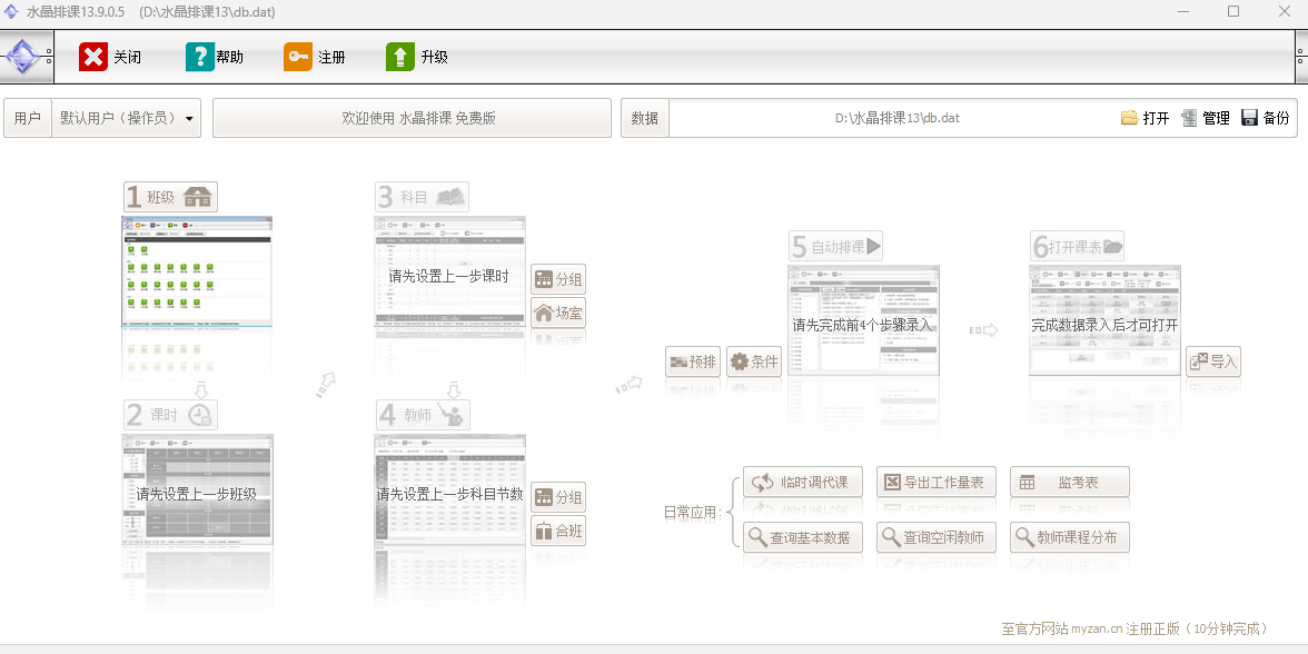 水晶排课电脑版是一款秒级导入的教务加速工具,Excel/WPS字段自动映射,教师、班级、场地、科目四大表一次性读入,五千条记录十秒完成,同时无需联网即可秒级启动,让新学期课表从持久战变成闪电战。