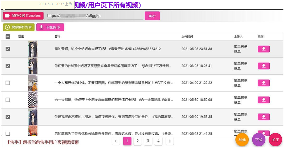 2、也可以直接输入用户ID,解析到他主页所有的视频。