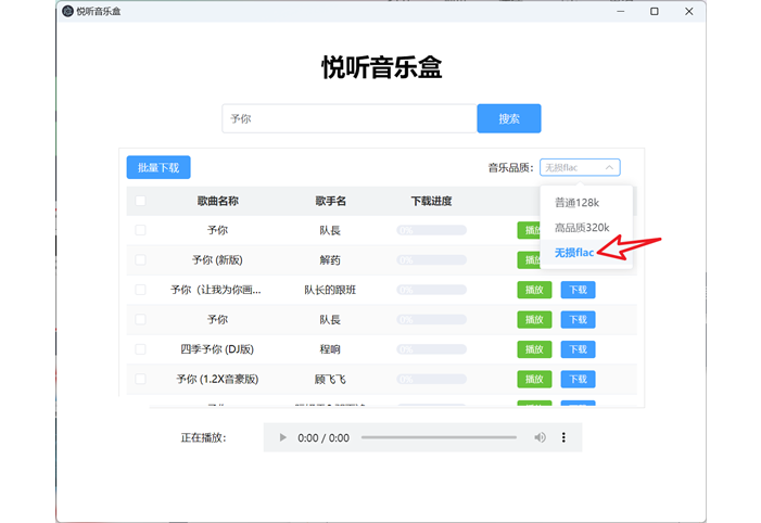 1、输入歌曲或歌手名精准搜索免费下载歌曲创建歌单离线听。