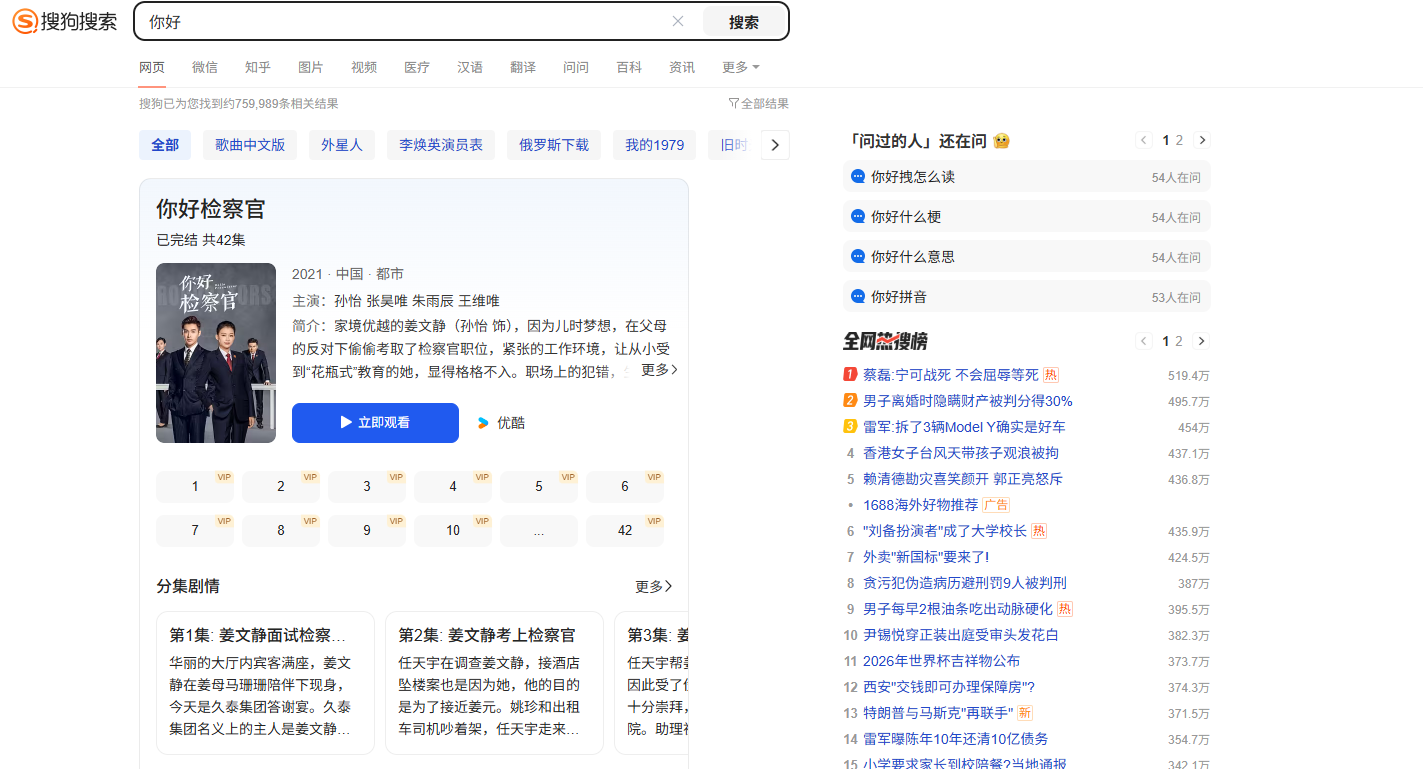 2、输入后点击搜索,即可跳转搜索页面;