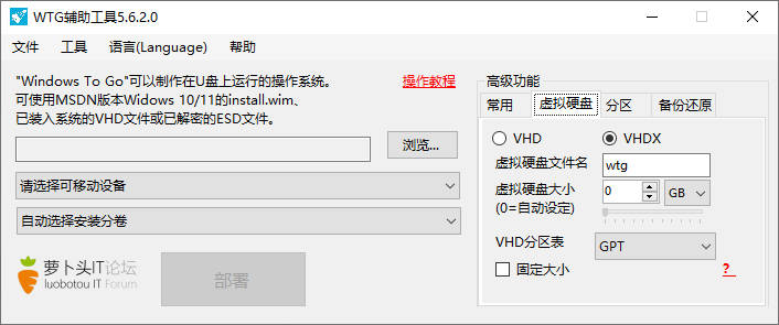 1、制作WTG系统会完全清空U盘或移动硬盘,请务必提前将设备中的重要文件备份到其他位置。