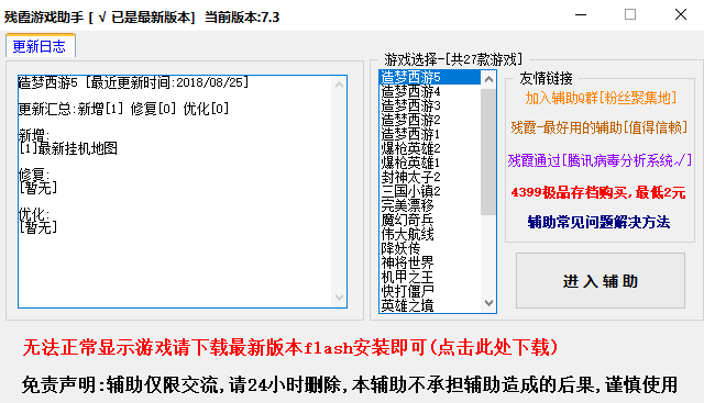 2、版本兼容:和各种游戏版本都是兼容的,若游戏有更新版本官方还会进一步更近。