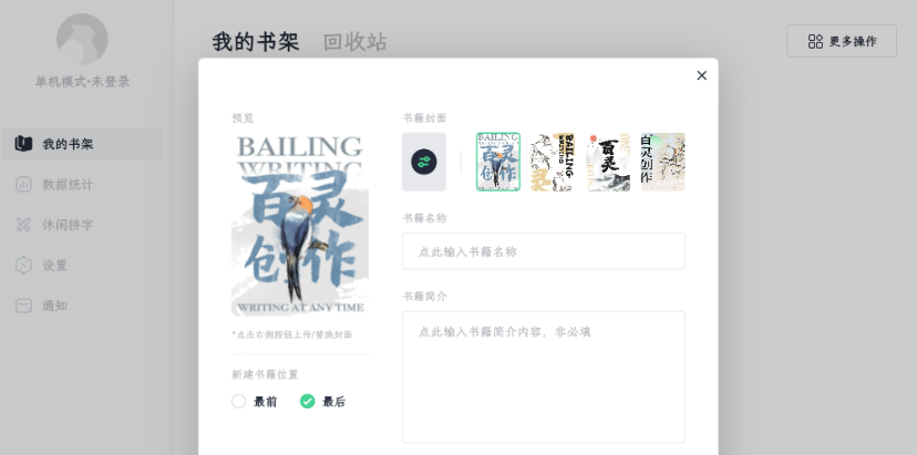 百灵创作pc版是一款轻量便捷的小说码字软件,用户能通过该软件来编辑自己的小说,内置海量常用的工具。从大纲编辑再到章节预览再到智能纠错等应有尽有,让创作更轻松方便,感兴趣的小伙伴快来下载试试吧。