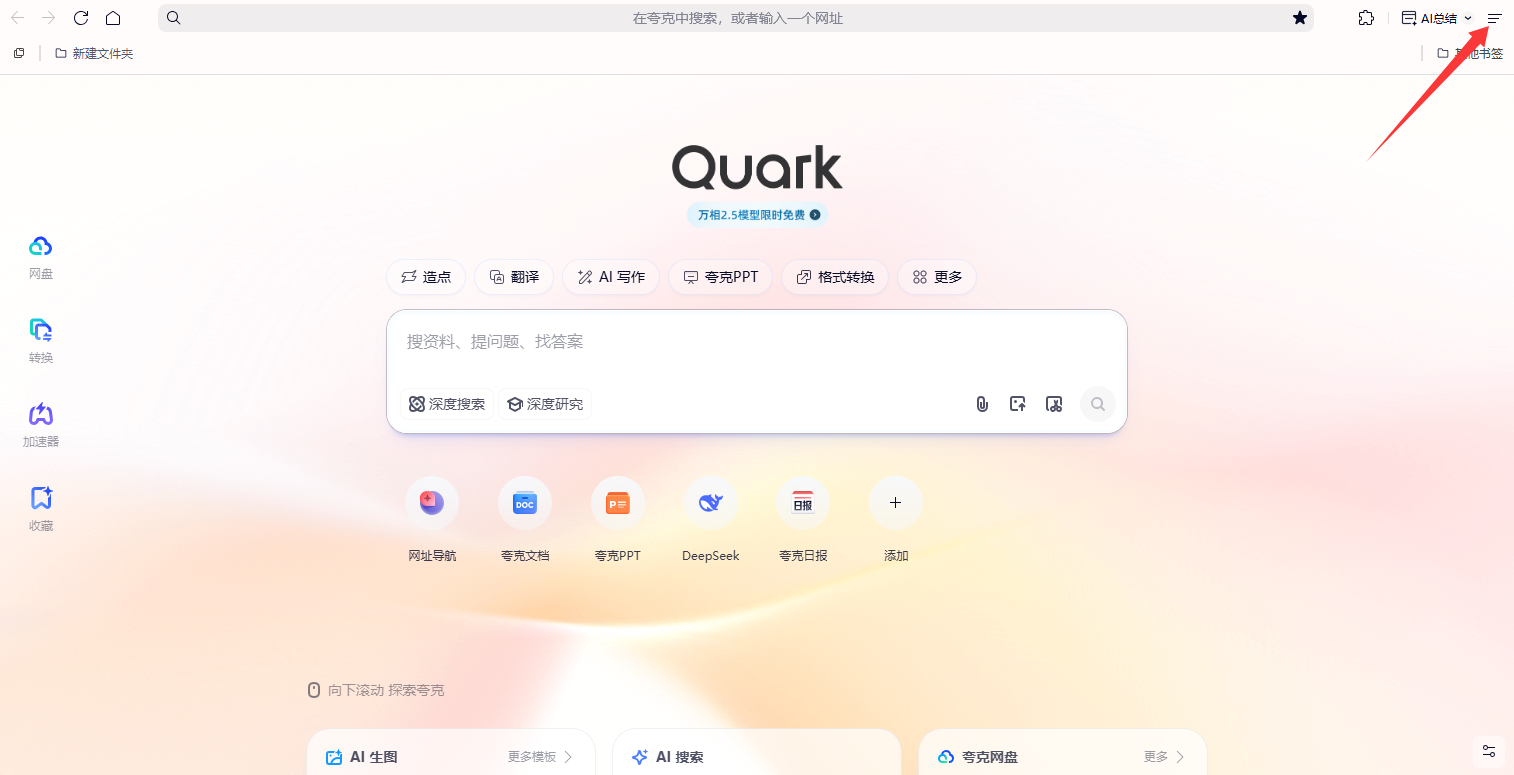 夸克AI工具箱是一款非常智能化的AI浏览工具,软件当中提供了非常智能化的浏览搜索引擎,用户可以在软件当中根据自己的需求来免费的进行搜索,这样就能够快速地在网络当中找到指定的关键信息便于了解。