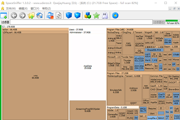 SpaceSniffer中文绿色版是一款专门用于进行电脑磁盘清理的优质工具,软件当中能够深度化的进行各种不同磁盘的扫描,在其中能够识别出各种不同给的垃圾以及文件等,通过对其进行清理从而优化电脑的空间。