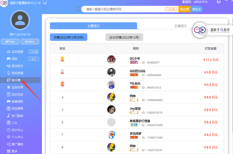 可以呈现出非常全面的消费排行,主播可以在软件当中了解到所有土豪的消费金额了。