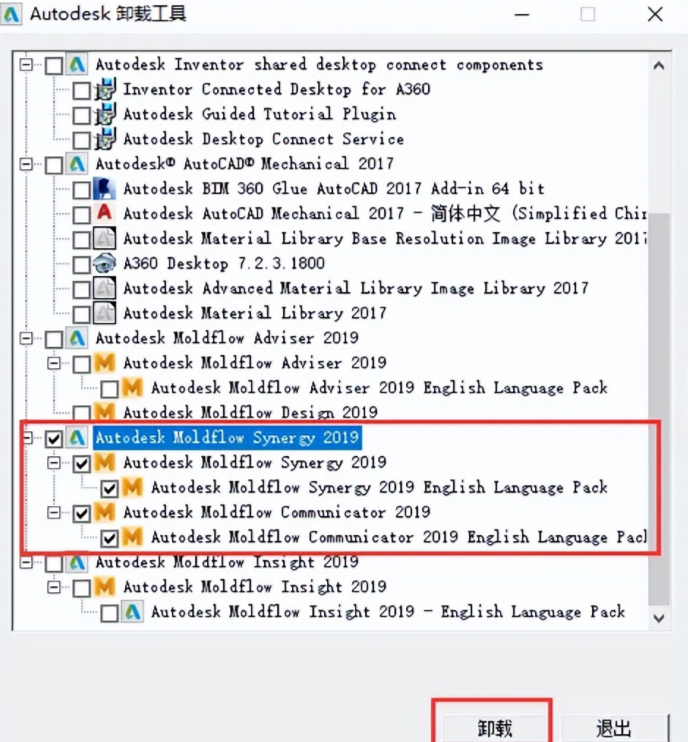 4、自由卸载:只要是autodesk系列的软件就会被该工具识别出来,可自由勾选想卸载的应用。