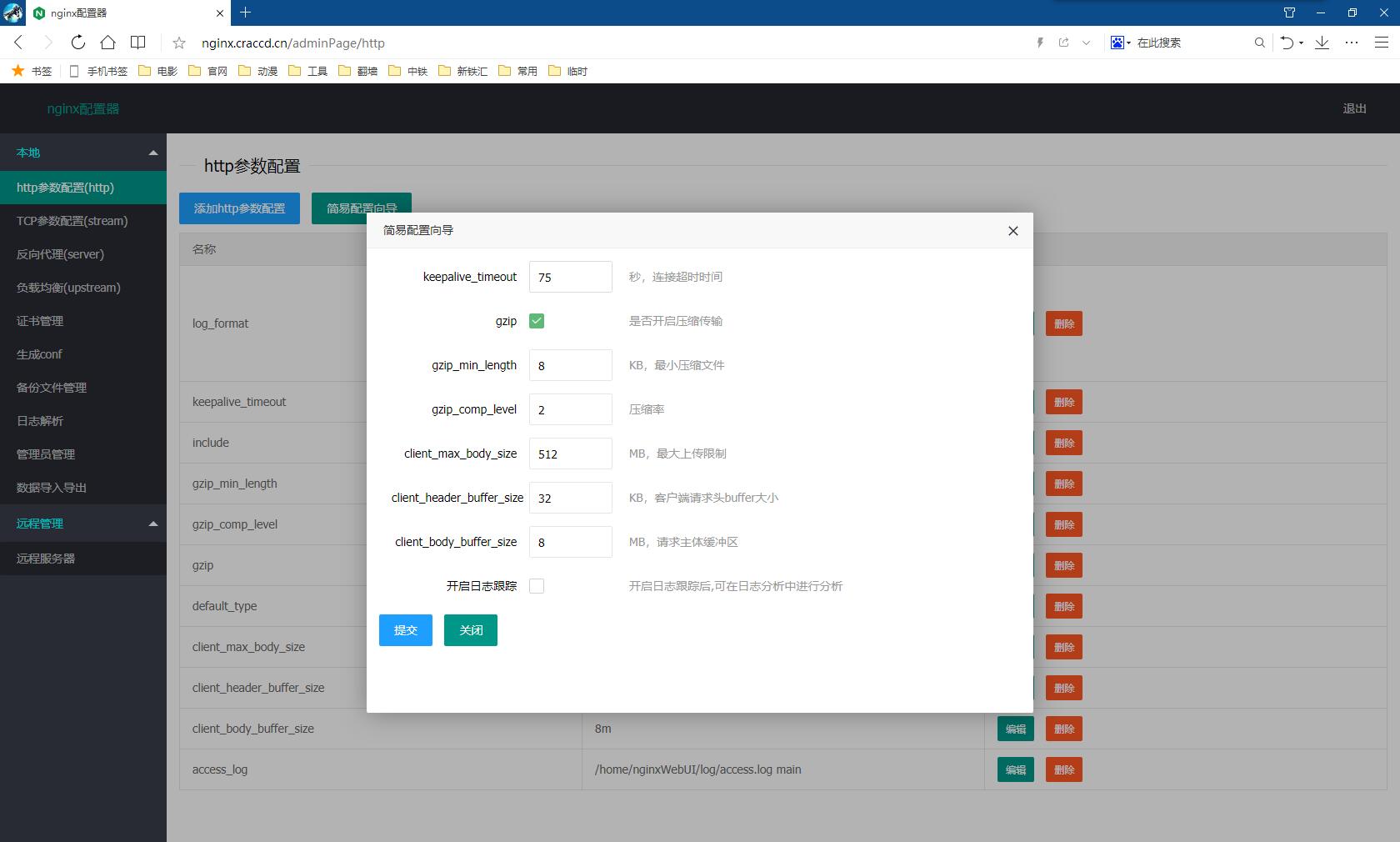 集成日志解析功能,可以配置是否生成日志以及定时对Nginx的访问日志进行分析。