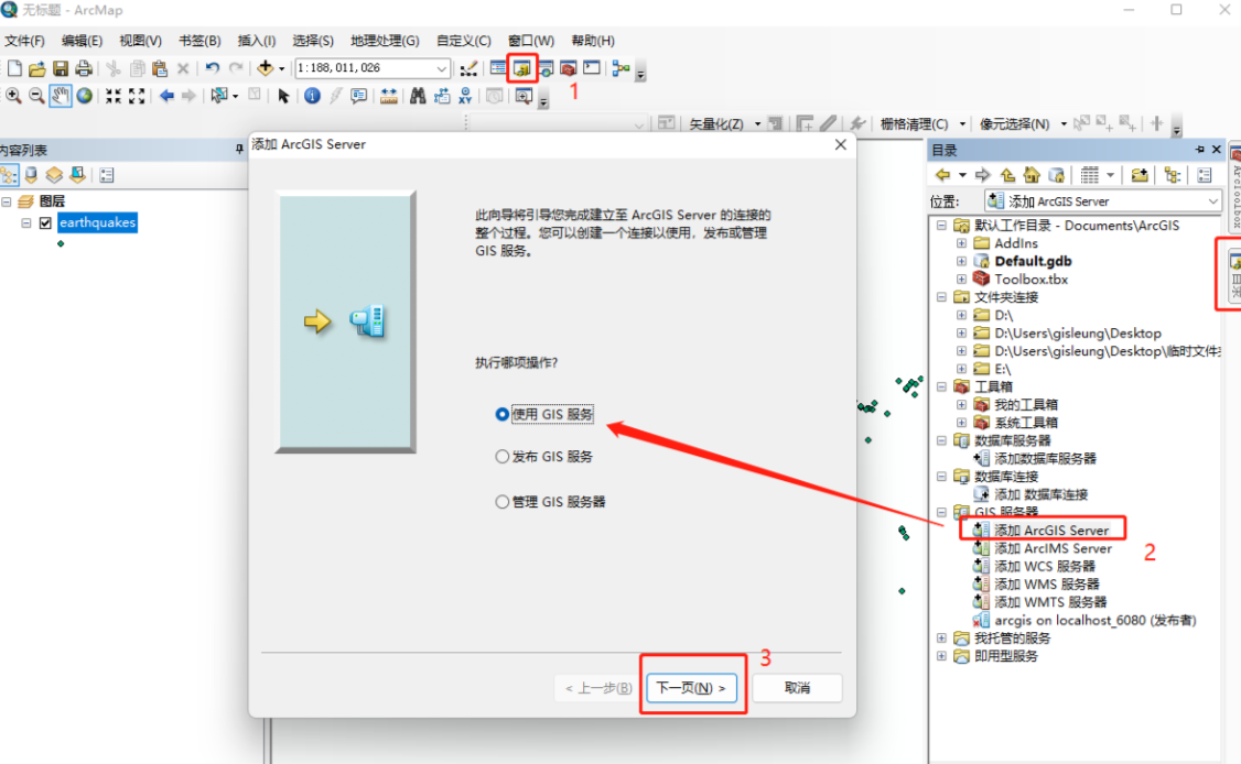 1、进入软件之后点击添加一个ArcGIS Server 服务。