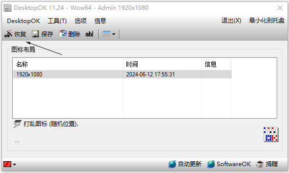 1、在本站下载desktopOK软件,打开软件,点击保存即可保存当前布局。