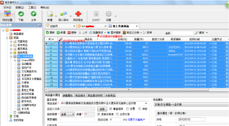 支持对网店中的多个商品信息进行批量修改,节省大量手动操作的时间和精力。