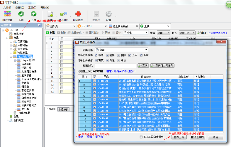 3、接着点击上传按钮就可以对商品来进行上传了。