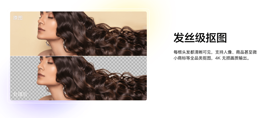 4、发丝级抠图:突破传统抠图限制,就连头发丝也能抠出来。