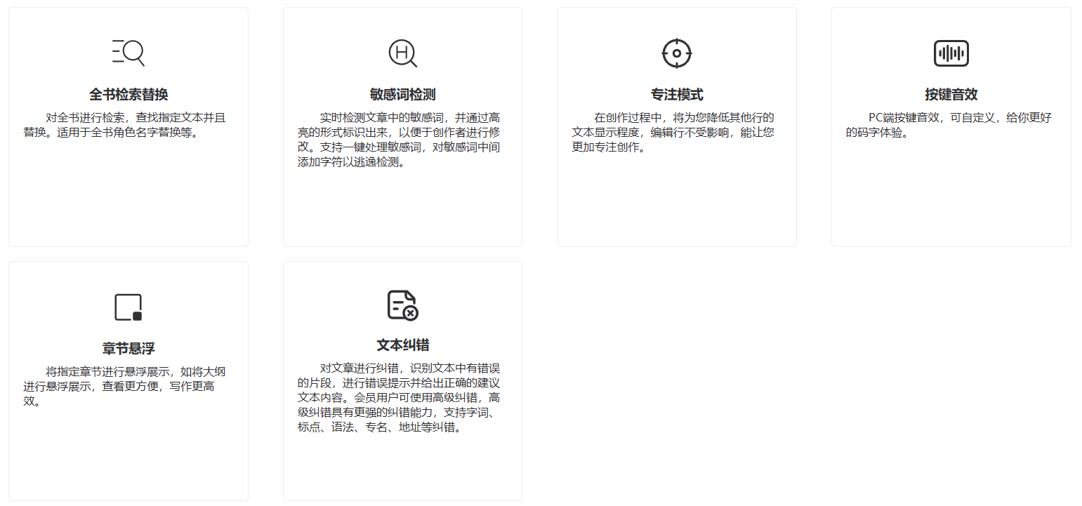 可以在整部作品中快速查找特定内容,并支持批量替换指定词语或段落。