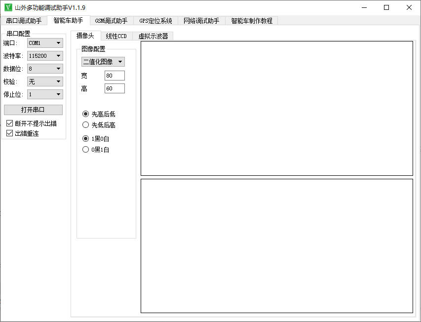 2、使用虚拟示波器或摄像头调试等功能时,务必确保下位机设备与软件之间的通信协议匹配,例如帧头帧尾格式和数据类型的设置。