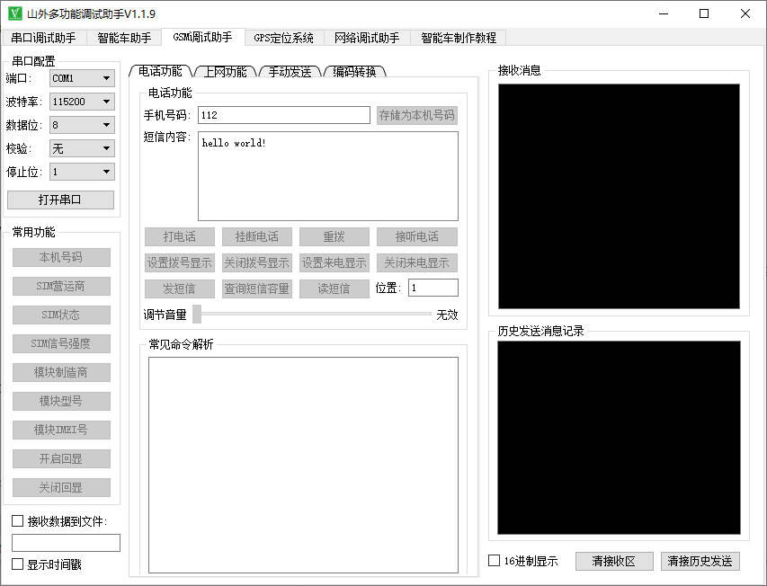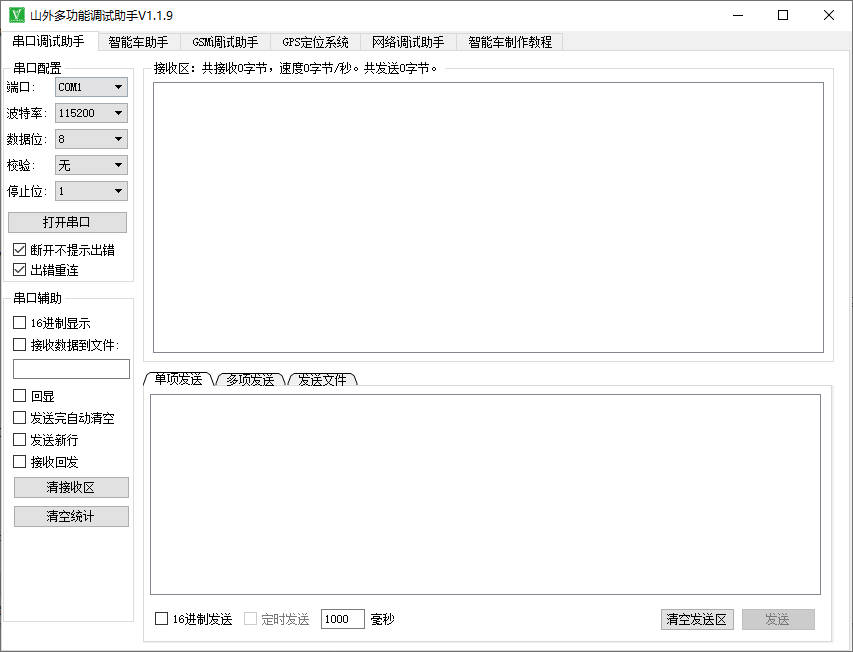在发送数据时可选择自动加入“rn”等行尾标志,此功能特别适用于GSM模块的调试。