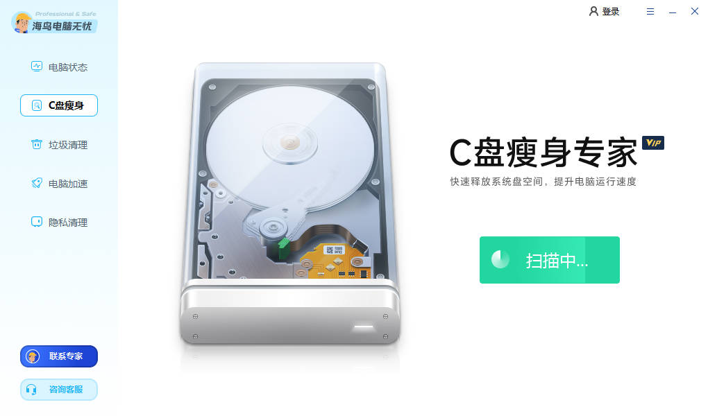 海鸟电脑无忧pc端是一款功能全面的电脑性能提升工具软件,它具备C盘瘦身和垃圾清理等核心功能,可以有效释放磁盘空间并清理系统使用过程中产生的各种缓存与日志文件,同时还能优化开机启动项以实现电脑加速。