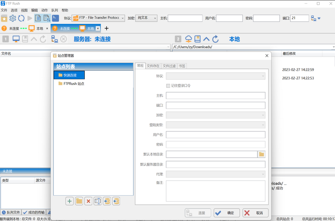 FTPRush绿色版是一个跨平台高性能文件传输工具,支持在服务器之间直接传文件,不用在本地中转,这样节省了不少操作步骤,可以快速获取到所需文件,对于追求生产力与灵活性的用户来说,它是一个不错的选择。
