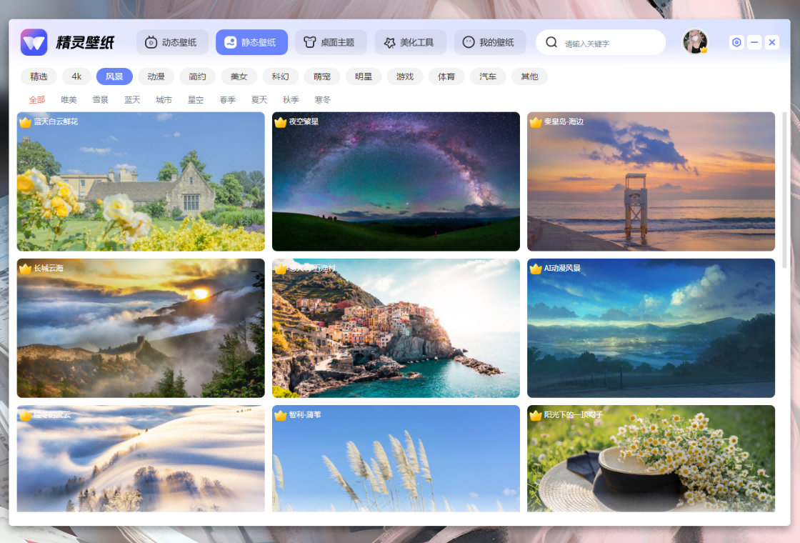 精灵壁纸软件下载是一款灵活的桌面美化工具。它提供海量壁纸资源,涵盖风景艺术动漫等分类,支持动态壁纸与静态图片,一键下载并快速应用。适用于个人桌面美化及办公娱乐场景,无需复杂设置即可打造独特桌面风格。