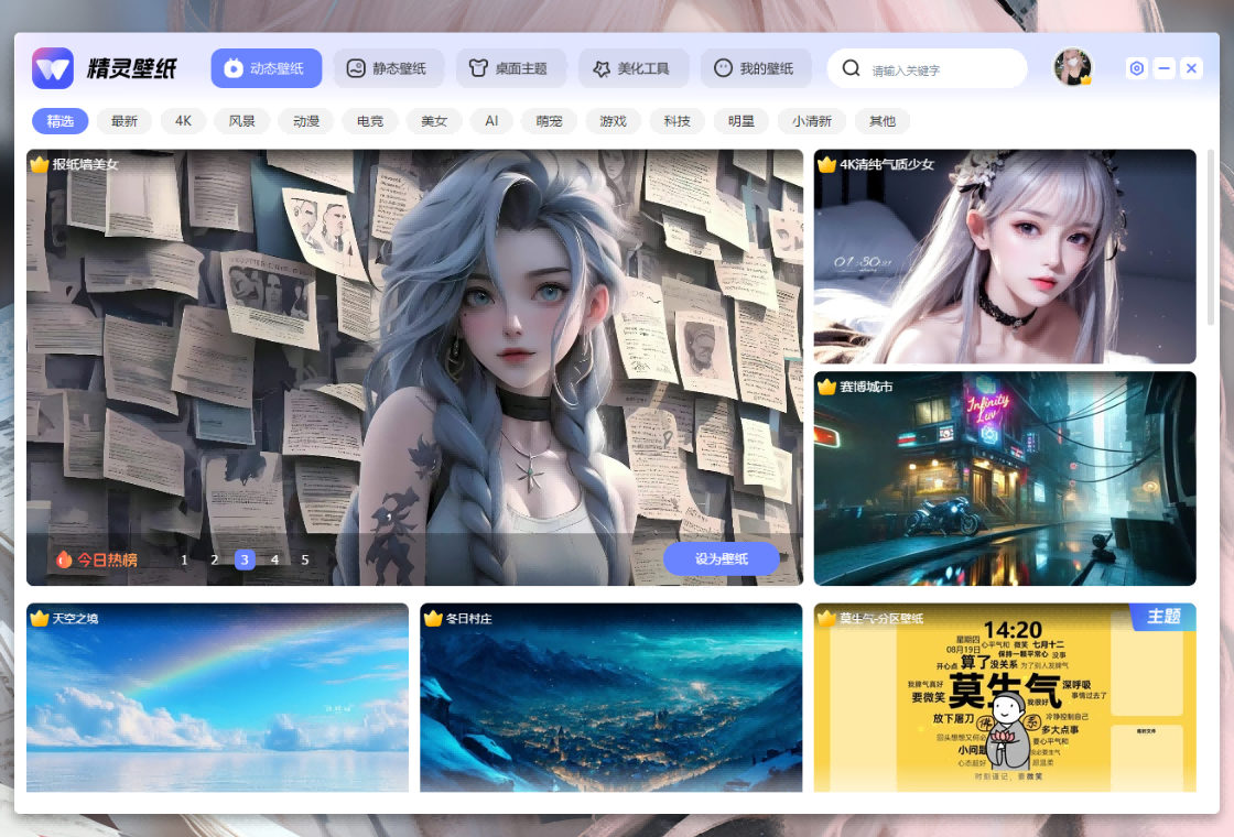 标签关键词双引擎搜索,快速定位主题壁纸,心仪素材一键直达精准高效。