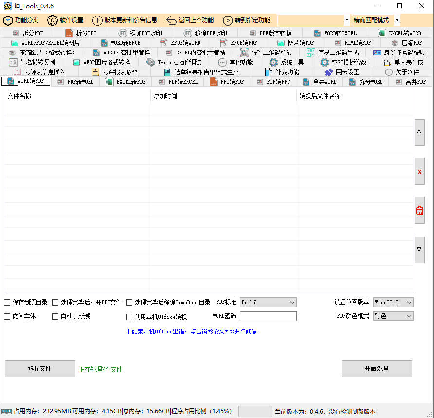 坤Tools正版是一款免费文档处理工具箱软件,它集成了多种文档与格式处理功能,并能合并与拆分文档、处理PDF水印、压缩文件以及批量替换文档内容等,其特色在于所有操作均在本地计算机上完成,无需联网,有效保障了用户数据的安全,感兴趣的话快来下载看看吧。