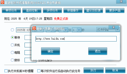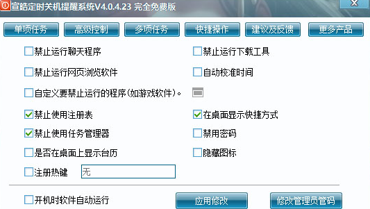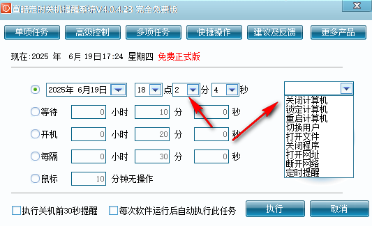 宣皓定时关机提醒系统是一款非常专业的定时工具,软件当中可以设置诸多的功能利用定时来自动化的进行处理,让电脑能够在指定的时间当中自动执行一些任务,而用户也就能够更加方便的进行电脑相关内容的处理。