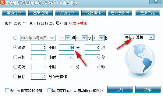 软件只有一个主界面,可以直接在主界面当中设置好时间以及任务就可以。