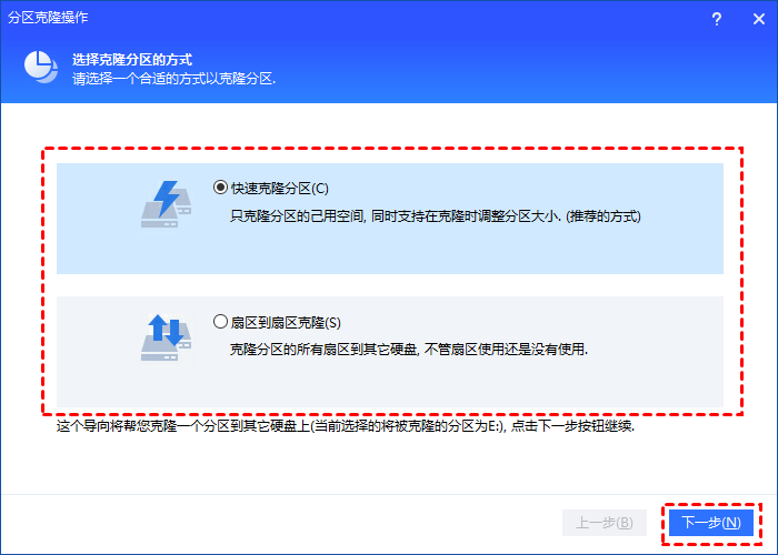 1、进入软件之后选中分区后点击右边的克隆分区。