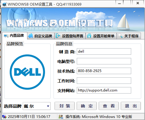 4、技术支持信息:还能自定义厂商、产品、电话等信息,增加自家品牌的辨识度。