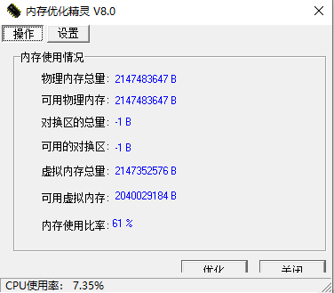内存优化精灵免费版是一个专业的内存管理与系统优化工具,它会实时监测内存和CPU占用情况,看到物理内存总量和当前可用的物理内存,若发现内存爆满就可以一键优秀,关闭不用的进程,释放足够的内存,确保电脑能够流畅运行。