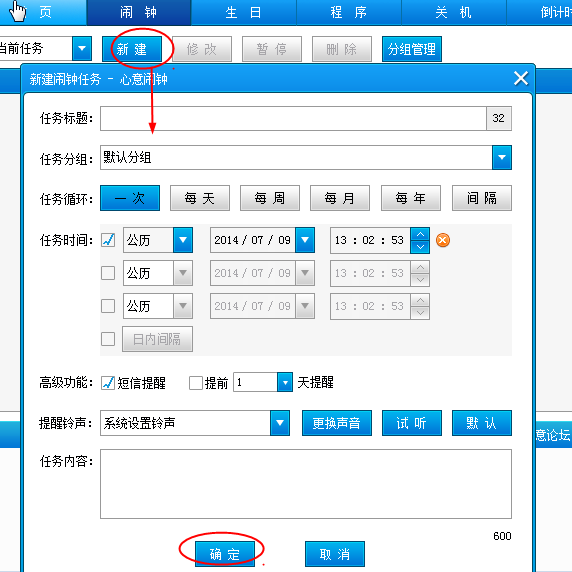 3、多种提醒:提供闹钟提醒和短信提醒两种提醒模式,可根据需求来选择关闭短信提醒。