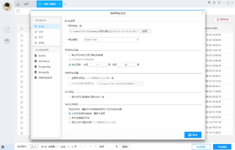 允许将采集结果导出为Excel等本地文件格式,所有手动导出功能均免费无限制。