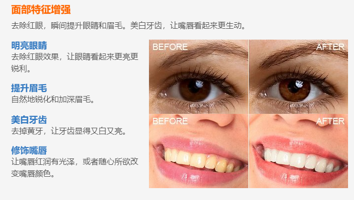 可以对照片中人物的五官来进行修饰操作,提供了优质美化效果,让用户照片更加美观。