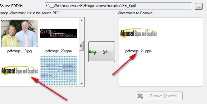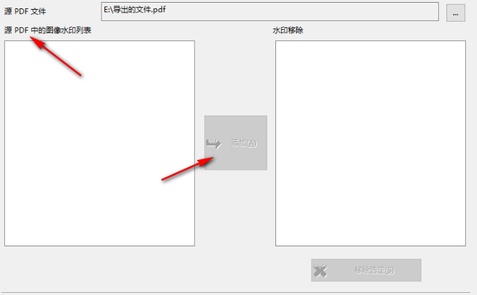 2、接着就可以选择对应的嵌入式的水印图形,将需要删除的图形添加到右侧。