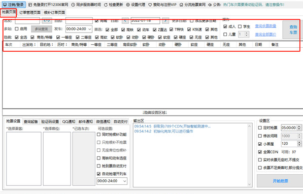 2、接着在抢票页面对各种类型的数据来进行设置和调整。