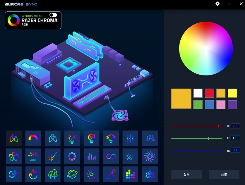 GALAX Aurora Sync影驰光效软件是一款专业高效的灯效处理软件,软件的功能十分强大,能轻松帮助用户同步各种外接设备的灯光效果。而且用户在软件里编辑灯效的时候还能实时预览效果,通过预览来重新编辑调整。
